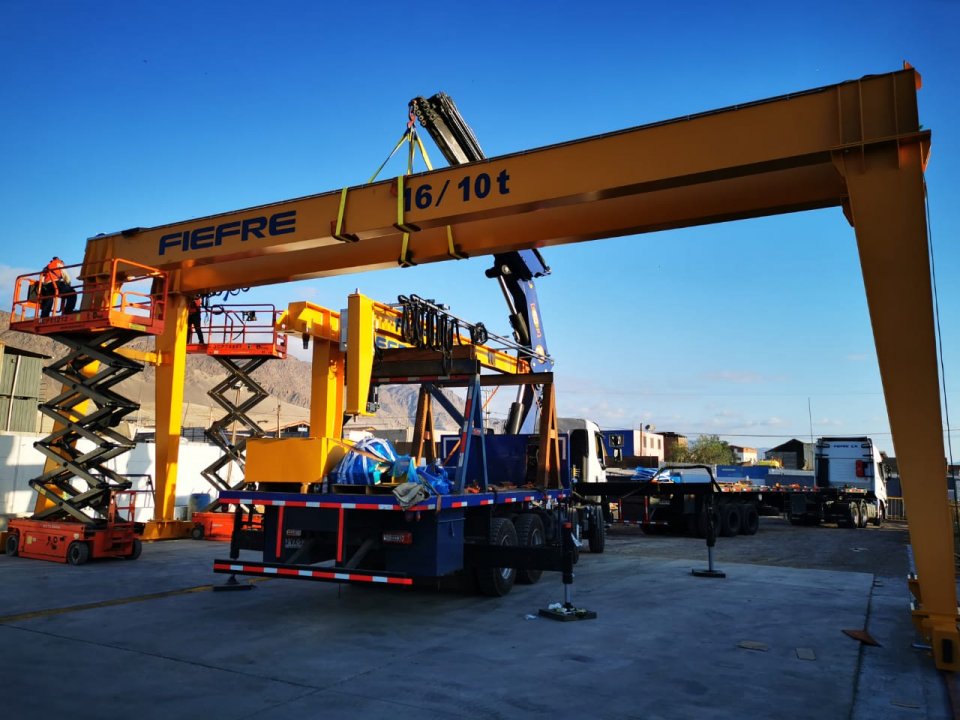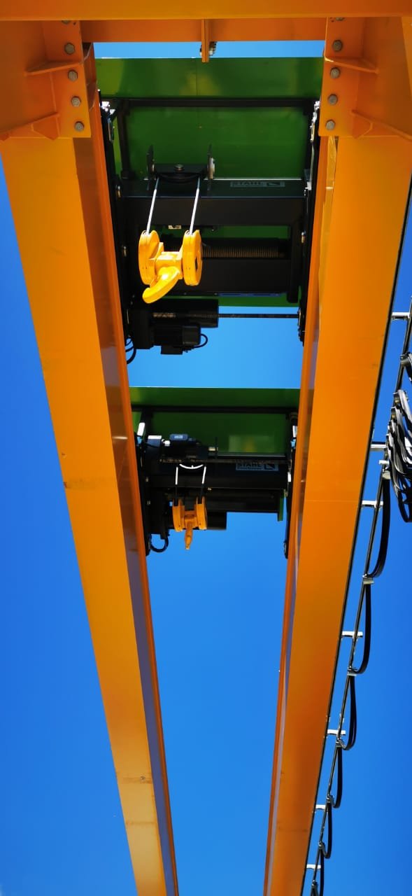 Desarrollo completo y puesta en marcha de pórtico con capacidad de 16.5 toneladas con equipo auxiliar de 10 toneladas El proyecto se desarrolló durante el primer trimestre del año 2020. El suministro abarcó la ingeniería, el diseño, fabricación, traslado, montaje y puesta en marcha para un puente grúa biviga tipo pórtico, con un equipo principal y auxiliar de la línea SH de Stahl Cranes System. El equipo principal tiene capacidad para 16 toneladas y el equipo auxiliar trabaja en 10 toneladas. La luz del puente grúa tiene 18 metros, una altura de trabajo para 8 metros y un recorrido total de 56 metros. El puente grúa se encuentra actualmente operativo y trabajando satisfactoriamente.