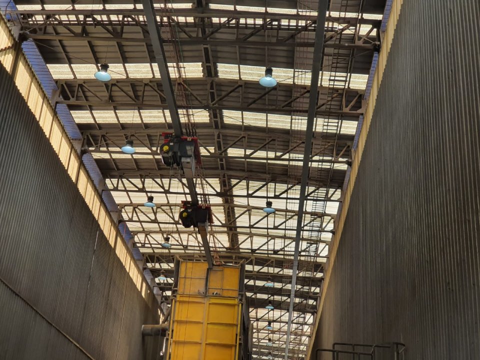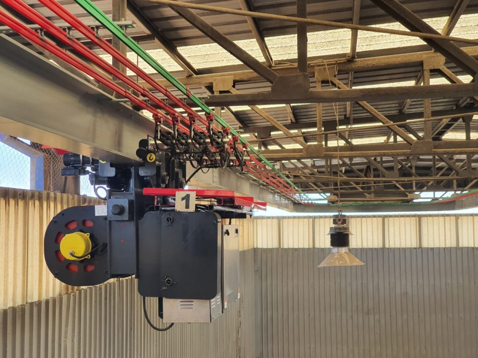 Durante el año 2019 estuvimos desarrollando en conjunto a nuestro cliente, el nuevo óvalo para la planta de galvanizado ubicada en Santiago, Chile. El proyecto consiste en un óvalo que tiene un recorrido de 150 metros y que está a 13 metros de altura sobre la piscina de galvanizado al interior de la planta. El equipamiento seleccionado integra 4 equipos Worldhoists que funcionan en tándem para subir y bajar elementos para proceso de galvanizado. Estos equipos están equipados con VDF para todos los movimientos, con clasificación M6 para trabajos severos y con sistema true vertical lift. Toda la ingeniería y desarrollo para el proyecto fue realizado durante el 2019, en cual se destaca la fabricación del monorriel curvo para el sistema de óvalo, con bahía de mantenimiento, electrificaciones para altas temperaturas, sensores anti-colisión, radio controles para funcionamiento en tándem y sistemas de comunicación entre equipos desarrollado por Fiefre y Worldhoists. El proyecto fue montado, incluyendo la puesta en marcha a principios del año 2020. Este óvalo actualmente participa de forma continua y activa en el proceso productivo del cliente.